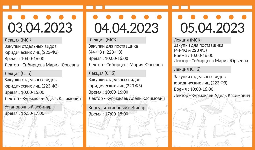 Расписание обязательных мероприятий по 44-ФЗ на 03.04-06.04 в [city_genitive]. Анализ практики ФАС и алгоритм действий для заказчиков в [year] году. Ознакомьтесь с полным перечн…