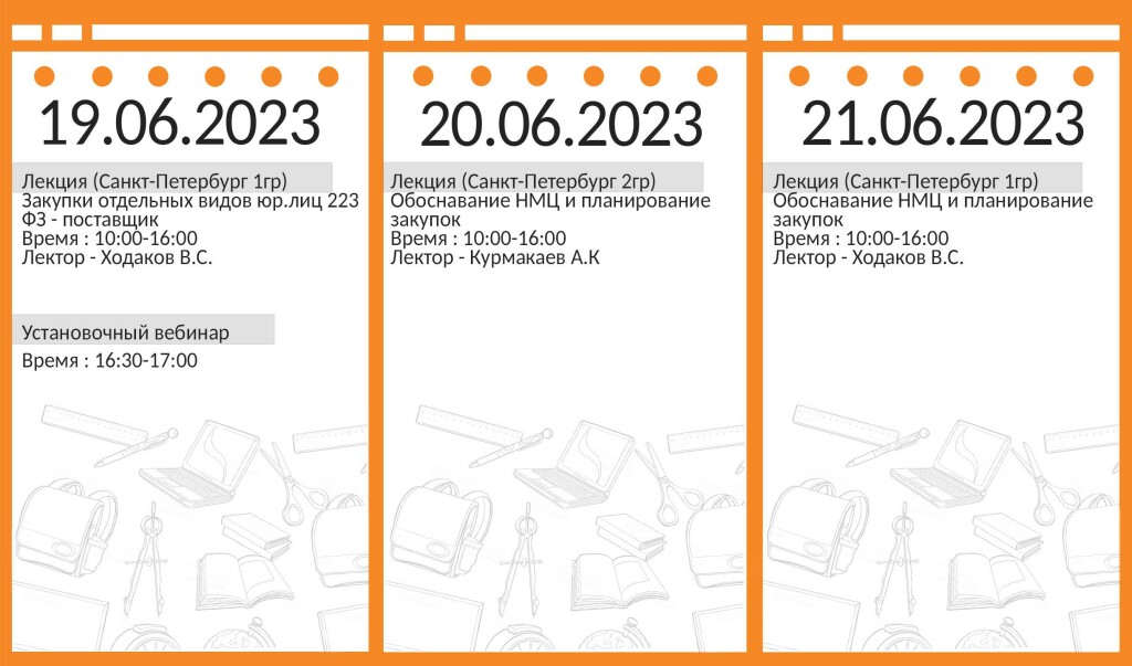 Расписание мероприятий по 44-ФЗ и контрактной системе на 19-23.06. Анализ ключевых изменений в ЕИС и практики ФАС на [year] год для специалистов госзакупок. Ознакомьтесь с детал…